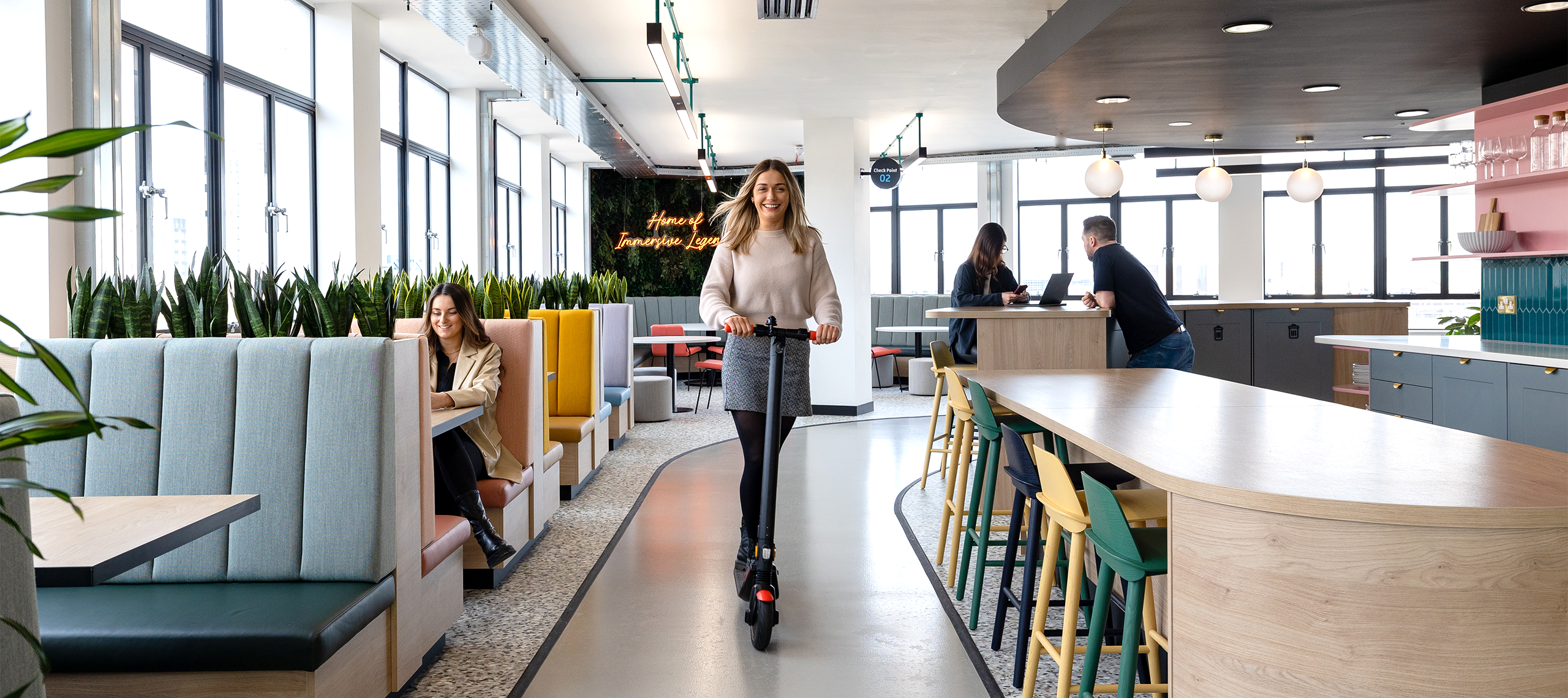 Immersive Labs challenged us to design and build a workspace matching their ambition, energy and commitment to their people. The result? The Immersive Playground – a multisensory home for their “Immersive Legends”.
